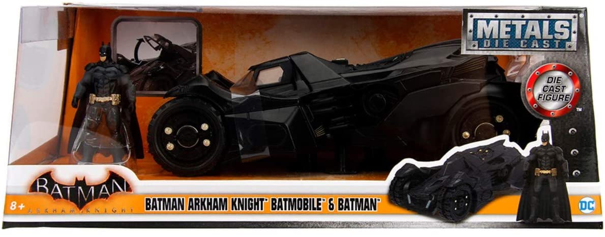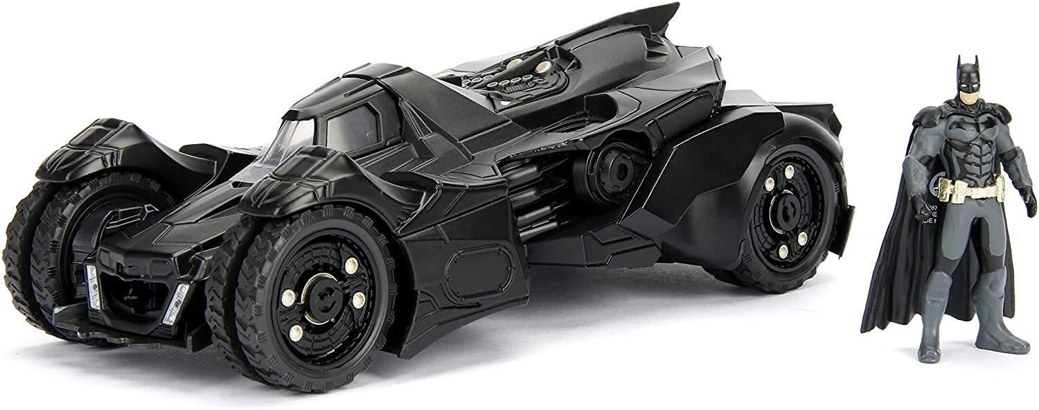 Modello in metallo die-cast in scala 1:24 ispirato alla Batmobile con parti mobili dal videogame Batman Arkham Knight.