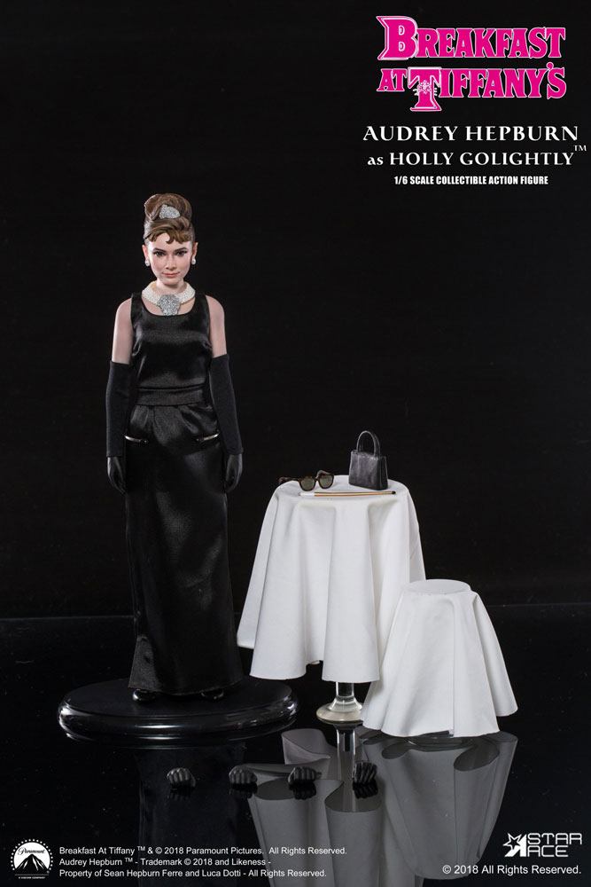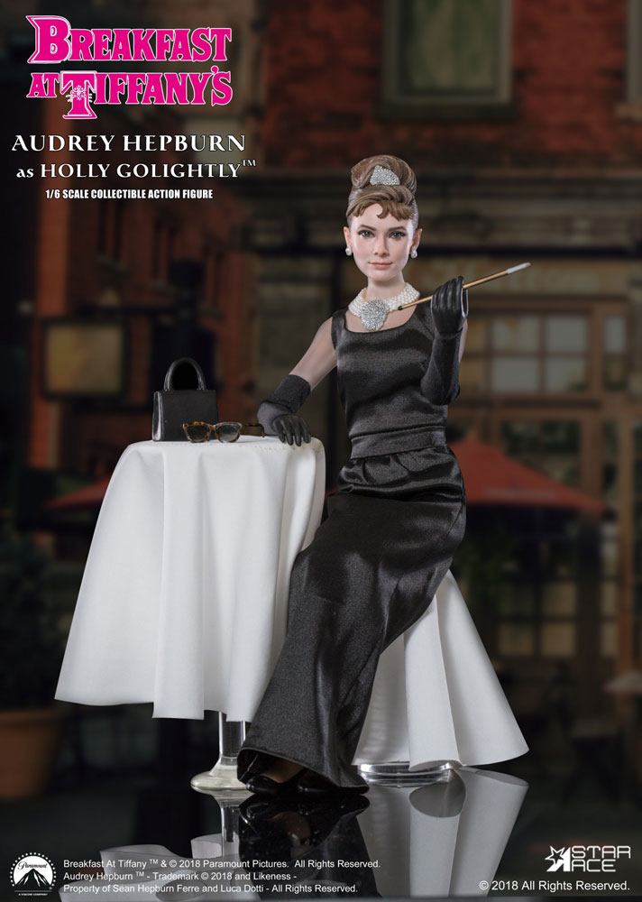 Dal classico cult del 1926 ”Breakfast at Tiffanys” da noi conosciuto come ”Colazione da Tiffany”, dove una bellissima Audrey Hepburn interpretava Holly Golightly ecco finalmente una degna rappresentazione per il mondo collezionistico…Star Ace Toys presenta la sua nuovissima figure in scala 1:6 di quella che è considerata un’icona del cinema americano e del ‘900, con il suo abito nero gli occhiali da sole e l’immancabile sigaretta con bocchino!