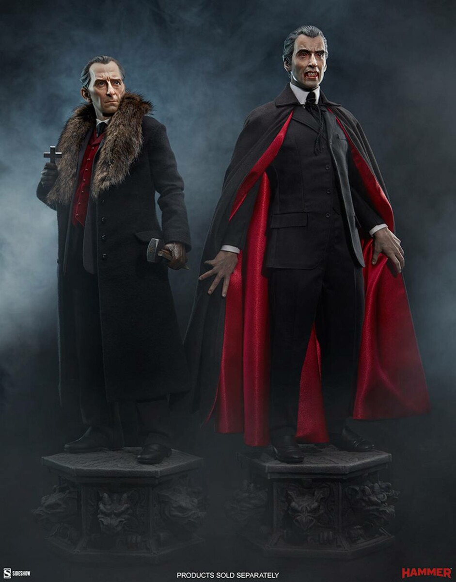 La statua del Conte Dracula è ancora più straordinaria se abbinata a quella di Van Helsing (venduta separatamente) basata sulla performance dell’attore Peter Cushing nei panni del leggendario cacciatore di vampiri.