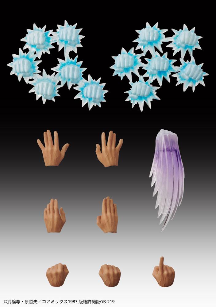 Con un’altezza di 18 cm il guerriero di Hokuto potrà ricreare le sue più famose mosse, dai mille pugni sino alle pose statiche da combattimento, questo grazie sopratutto agli effetti scenici proposti in confezione. Ricordiamo inoltre che la linea proseguirà poi con altri personaggi come: Raoh, Jagi, Thouzer ed altri ancora, già annunciati e confermati dalla ditta.