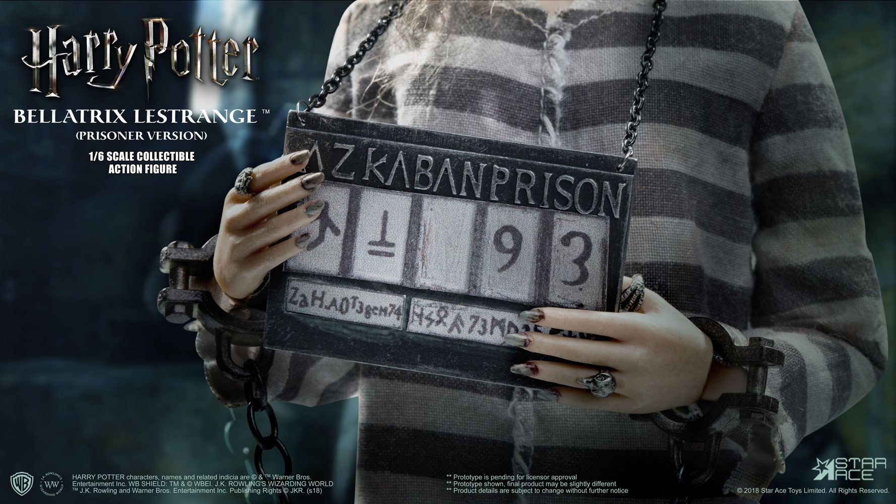 Star Ace presenta questa action figure di Bellatrix Lestrange alta circa 30 cm nella versione carcerata da Harry Potter e l’Ordine della Fenice.