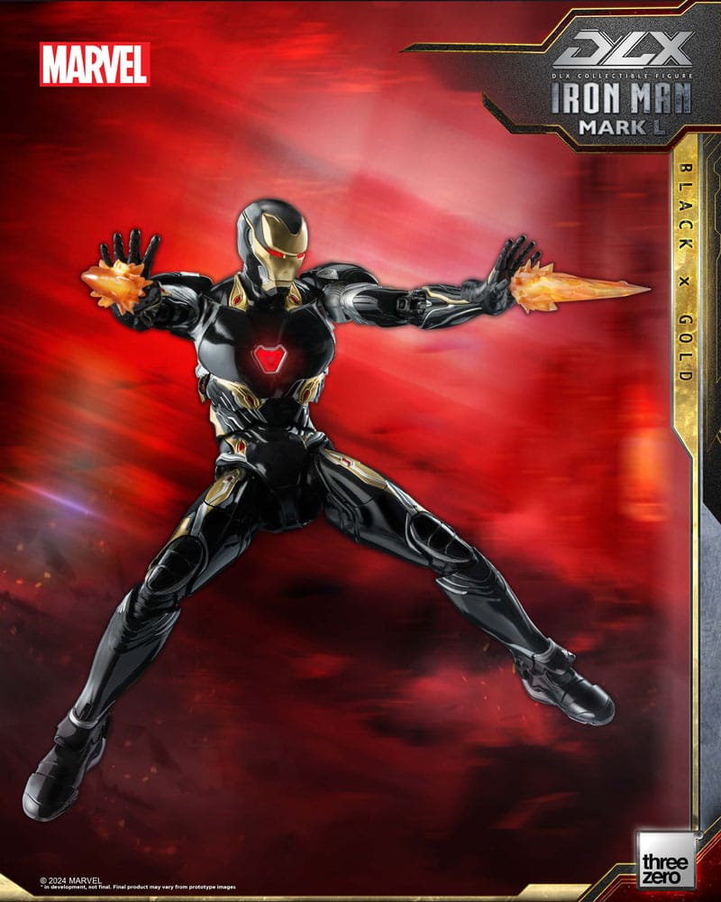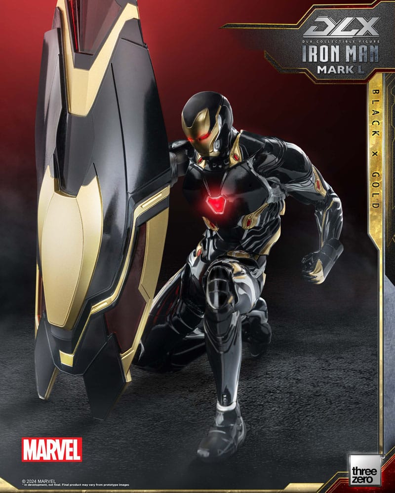 Threezero presenta l’action figure di Iron Man Mark 50 (Black X Gold) per la serie Marvel DLX.