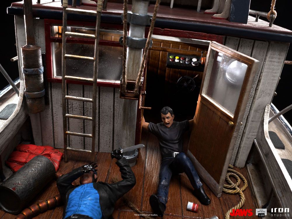 Una delle scene più iconiche della pellicola Lo SQUALO prende vita in questa statua di grandi dimensioni di Iron Studios, che immortala in un lungo diorama, il momento dell’attacco della famelica creatura alla barca su cui si trova Sam Quint. I dettagli della scultura sono incredibili e la texture degli oggetti lascia a bocca aperta. Un diorama che riesce a creare una dinamicità intensa nell’essere una statica clip di un film.