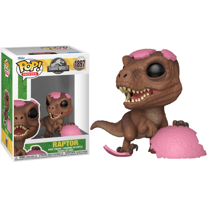 Funko presenta questa action figure in vinile del Raptor appena uscito da un uovo rosa da Jurassic Park, continuando la sua produzione di successo di repliche dei personaggi dei film di fantascienza.