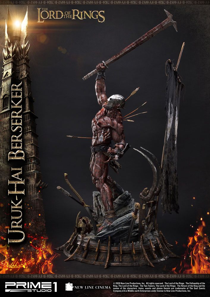 Questo Uruk-Hai Berserker è alto 93 cm ci su una base a tema sul Fosso di Helm, con la bandiera Uruk-Hai. Il Berserker è in piedi in un ruggito di vittoria, la sua spada alta in aria. Essendo l’attacco principale al muro, in tutto il suo corpo si possono vedere ferite fresche, vecchie ferite e persino un paio di frecce trafitte.