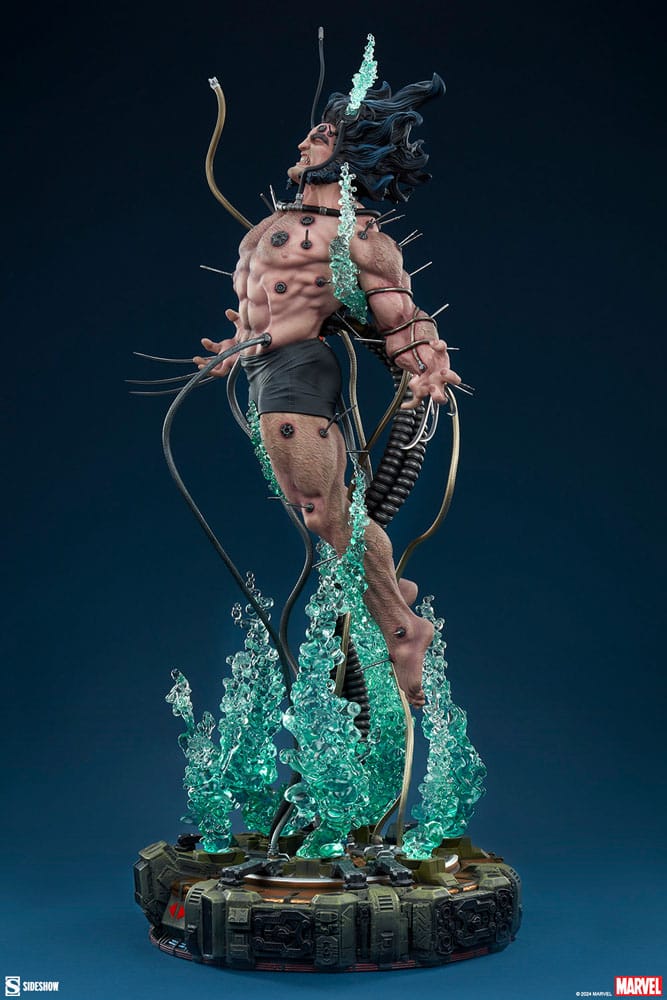 Wolverine: Weapon X, brillantemente concepita e scolpita da Martin Canale, raffigura uno dei momenti più emblematici della storia di Logan, ovvero il momento in cui il progetto Arma X prende vita e il mutante è sottoposto alla terribile operazione che inserirà l’Adamantio all’interno del suo scheletro. La statua rappresenta l’interno della vasca, con effetti scenici traslucidi che simulano le bolle d’acqua.