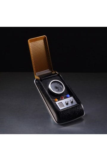 Il comunicatore giocattolo è a grandezza naturale e riprodotto con cura a partire dal prop originale, rendendolo perfetto per il cosplay. Si attiva aprendolo con un colpo di polso e include nove diversi effetti sonori tratti dalla serie classica di Star Trek, un motivo moiré in movimento e luci funzionanti.