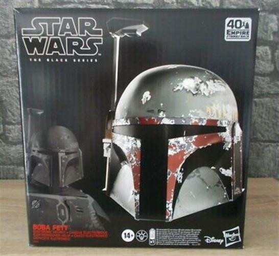 Hasbro presenta questo elmetto elettronico di Boba Fett in scala 1/1 direttamente Star Wars L’Impero Colpisce Ancora. Rifinito nei dettagli l’elmo ha imbottitura interna e con la semplice pressione di un pulsante il mirino si abbassa, attivando 2 LED rossi che lampeggiano in un modello “da caccia” e un telemetro illuminato a LED.