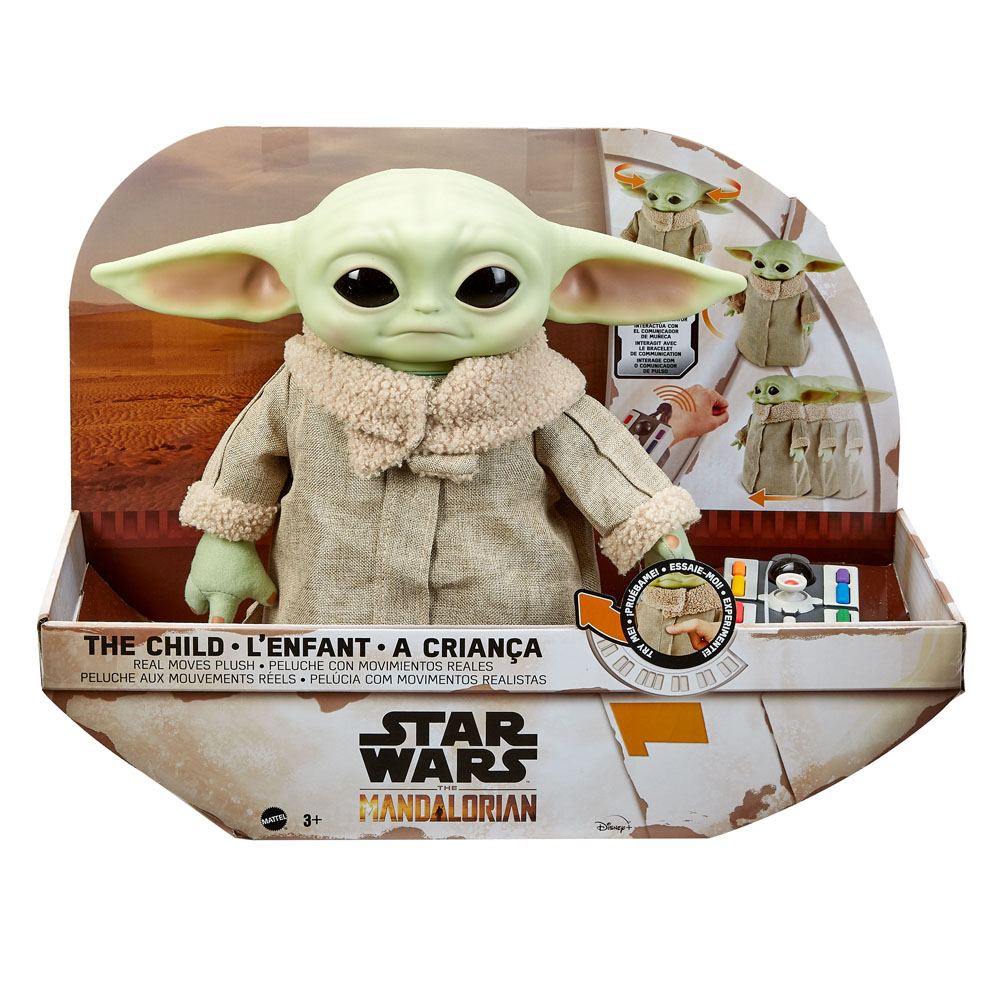 Il simpatico personaggio denominato da tutti come “Baby Yoda“ si muove e viene fornito con effetti sonori e interagisce con il comunicatore da polso incluso nella confezione.