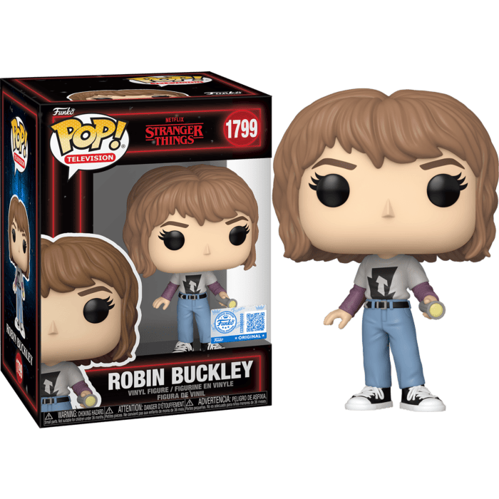Funko presenta questa action figure in vinile di Robin Buckley con la torcia dalla quinta stagione di Stranger Things, in edizione limitata, continuando la sua produzione di successo di repliche dei personaggi delle serie tv più famose.