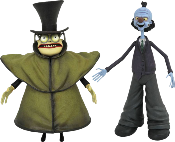 Diamond Select presenta queste 3 action figures da Nightmare Before Christmas!! Questo set di personaggi da 18 cm include Mrs Claus con elfo, Corpse Mum con paperella e Mr. Hyde with Corpse Dad a prezzo scontato.