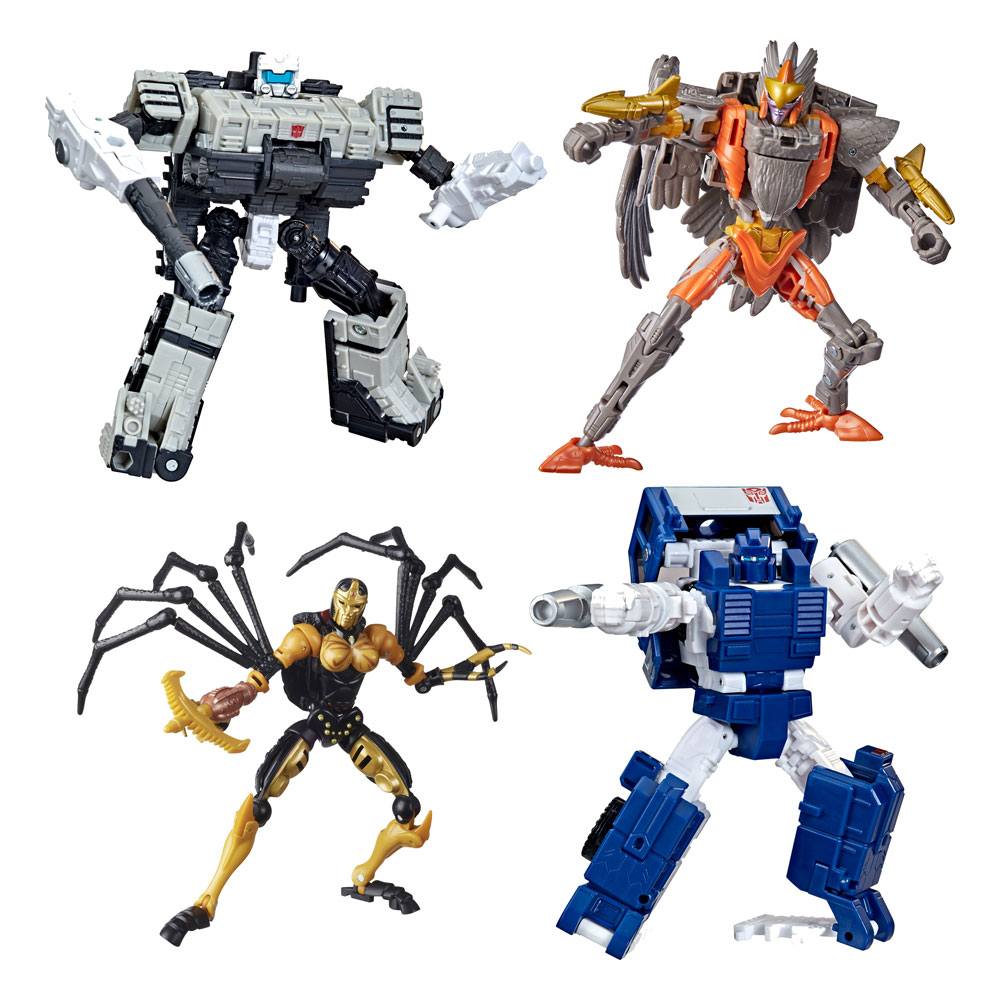 Questo set include le figure di Airazor, Blackarachnia, Autopot Pipes e Autobot Slammer, alte 14 cm che subiscono varie trasformazioni e sono dotate di accessori.