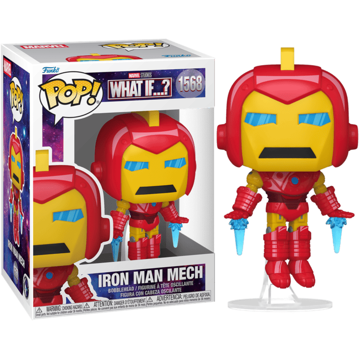 Funko presenta questa action figure in vinile di Iron Man Mech dalla serie tv What If…?, continuando la sua produzione di successo di repliche di personaggi della Marvel.